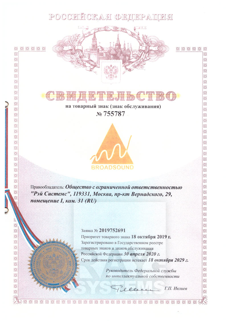 Свидетельство на товарный знак Broadsound